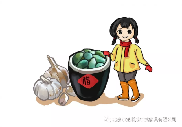 北京地区在腊月初八这天有用醋泡蒜的习俗,叫“腊八蒜”。腊过后正值春节,由于醋的浸泡,蒜整体呈碧绿,而醋也具有了蒜的辣味。春节前后,就着腊八蒜和醋吃饺子、拌凉菜,味道很好。腊八蒜的蒜字,和“算”字同音,寓意着各家商号要在这天算账,把这一年的收支算出来,都要在这天算清楚。北京城有句民谚:“腊八粥、腊八蒜,放账的送信儿;欠债的还钱。”后来有欠人家钱的,用蒜代替“算”字,回避这个算账的“算”字。