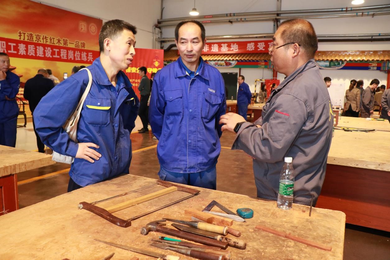 对于传统文化和红木收藏爱好者来说,这是场前所未有盛会,活动由京作硬木家具制作技艺传承人刘更生大师主持并宣布比赛开始,50余名来自金隅集团内的优秀职工进行了技能大赛。大赛分为木工与雕刻两个组,由五名专家组成的评审团进行现场审核并根据作品评进行排名决出优胜者。