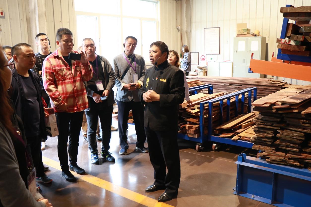参与本次活动的红木爱好者、企业员工、清华大学研习生总计300余人,跟随刘更生大师参观了京作硬木家具制作技艺的各个环节,刘大师对每个工艺步骤进行了详细的讲解。参观流程分为三个部分,第一部传承人刘更生师傅带领大家走进木料厂和龙顺成文化长廊,了解红木工艺和传承的历史记忆。