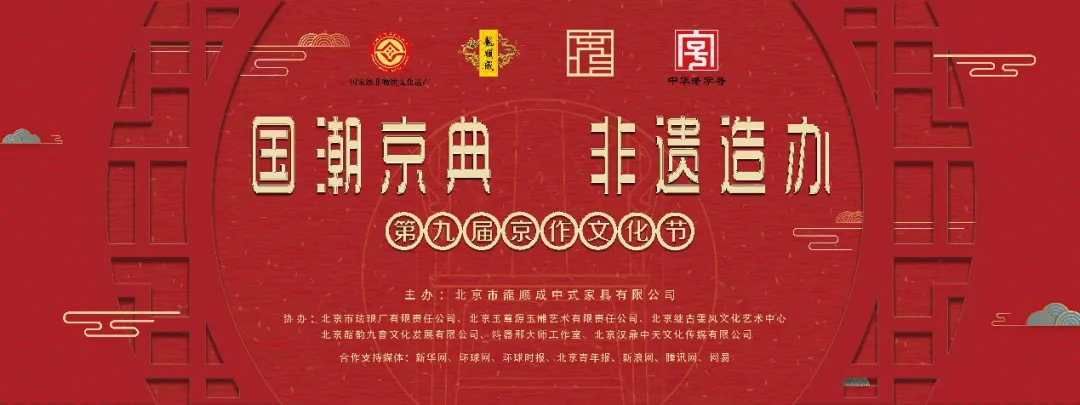 2020年11月22日,由国家级非遗技艺传承单位北京市龙顺成中式家具有限公司主办,多家国家级非遗技艺传承单位联办的“国潮京典,非遗造办”第九届京作文化节开幕式,在海淀区龍顺成国家级非遗传承基地隆重举行。