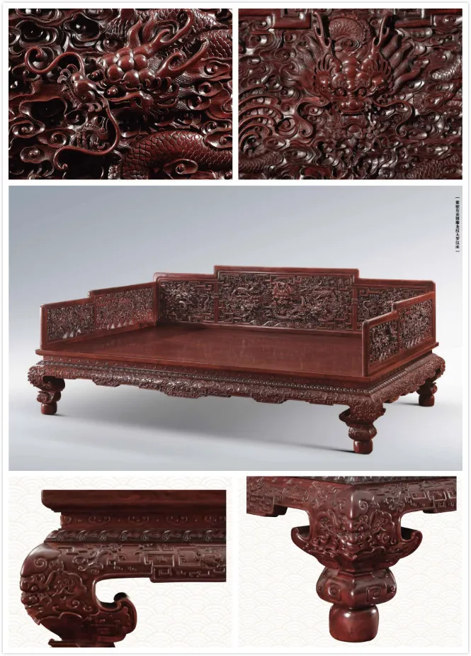 《复刻颐和园藏小叶紫檀雕龙纹大罗汉床》
