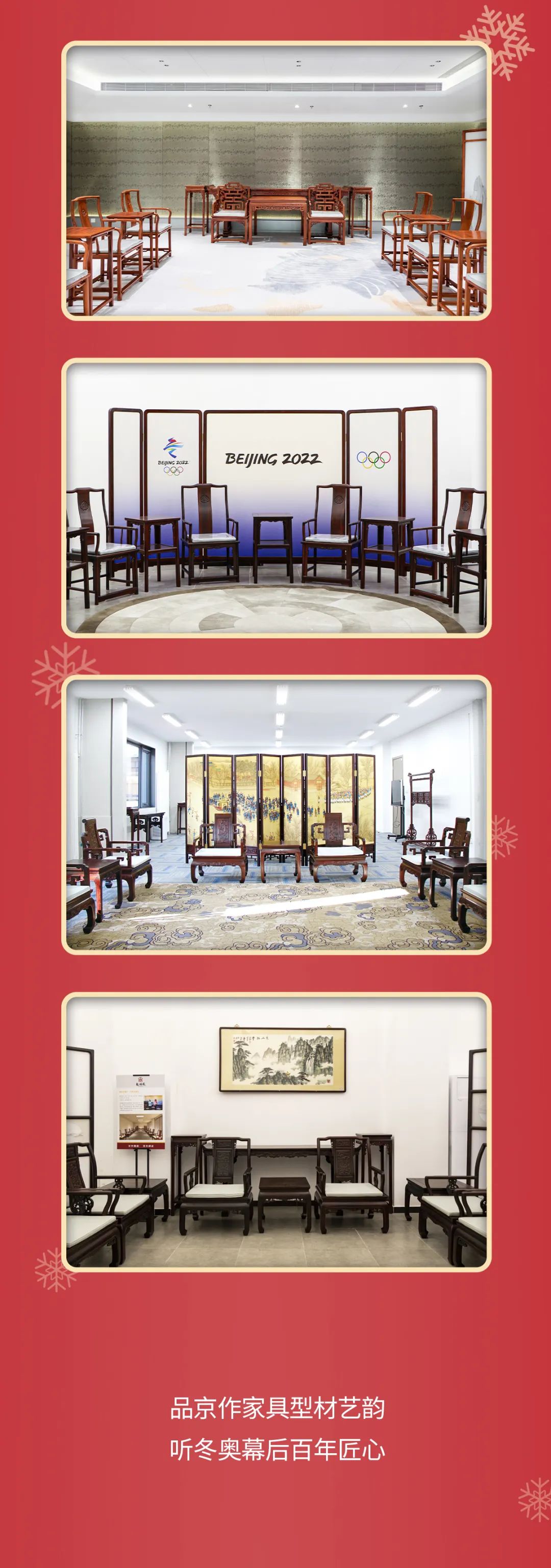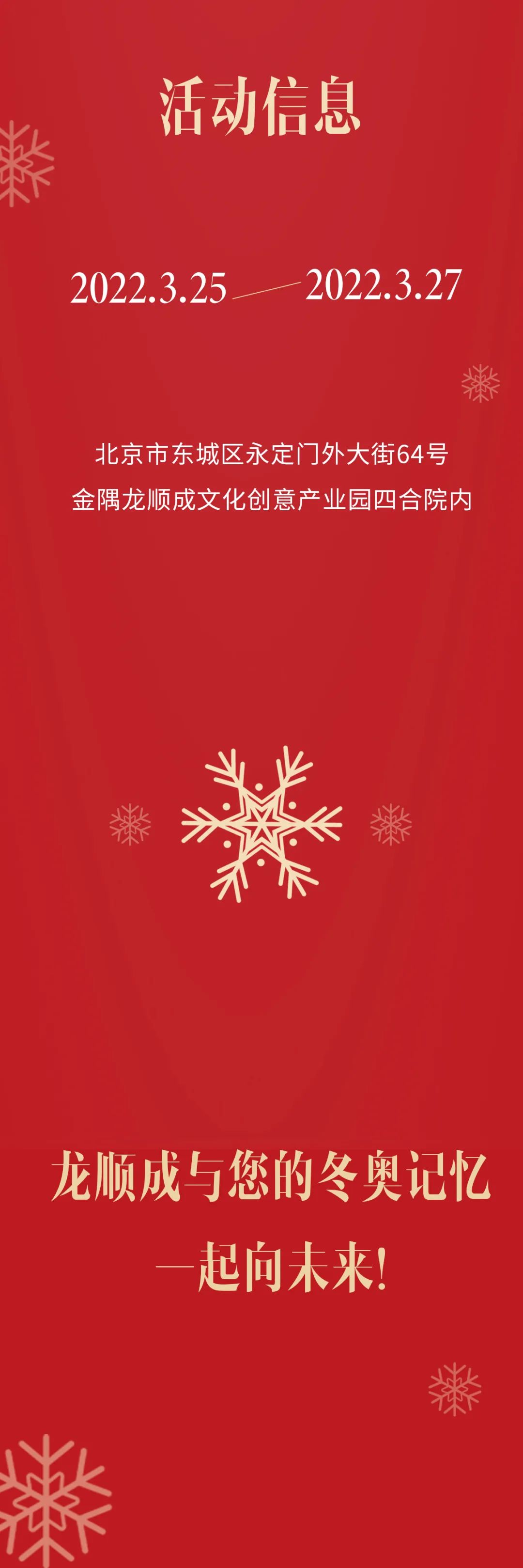 3月25日-3月27日,金隅龙顺成文化创意产业园四合院内举办龙顺成冬奥场馆礼宾家具品鉴会,435件冬奥场馆礼宾家具邀您共赏,大国工匠刘更生现场分享幕后故事,更有古琴艺术、调酒表演、精美茶点等您来~