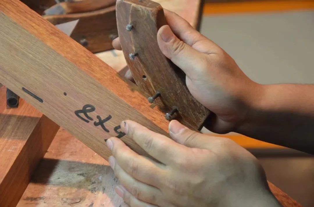 根据不同木材纹理及家具部件所在位置,“依纹取材”,严格执行京作工艺标准,杜绝五花头、裂缝、死节等木材缺陷,确保家具的美观程度及稳定性,不负“百年牢”之美誉。