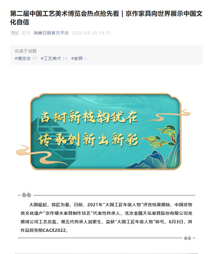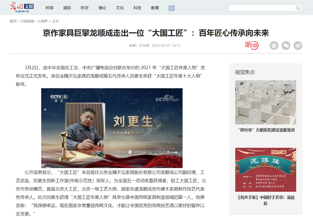 一件冬奥家具的价值有多高?荣获大国工匠的刘更生领衔制作,展现京作最高技艺,作为北京2022年冬奥会和官方生活家居供应商,引来新浪、网易、光明日报平台等权威媒体争相报道。