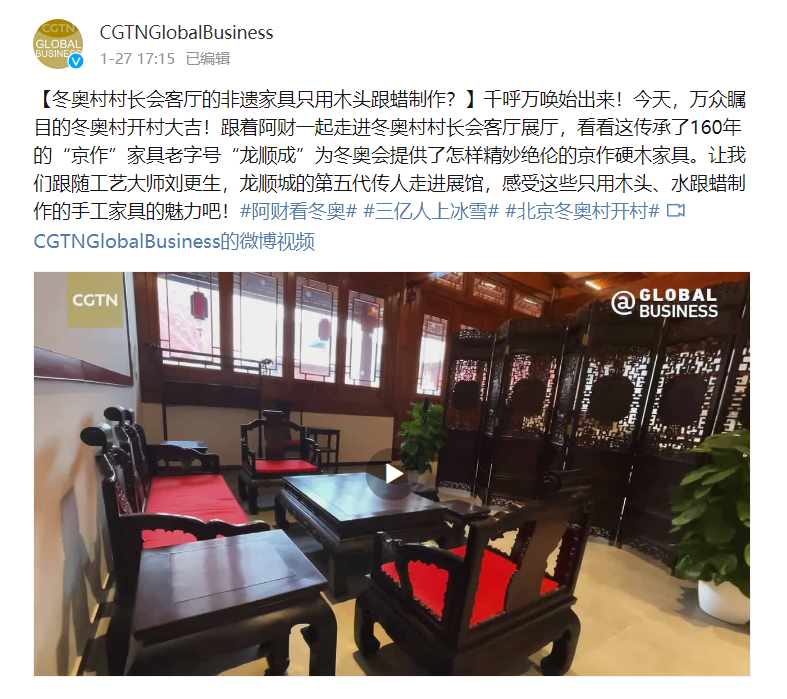 从APEC会议的托泥圈椅再到北京冬奥会场馆家具,龙顺成一直代表京作家具向世界展示中国文化自信。