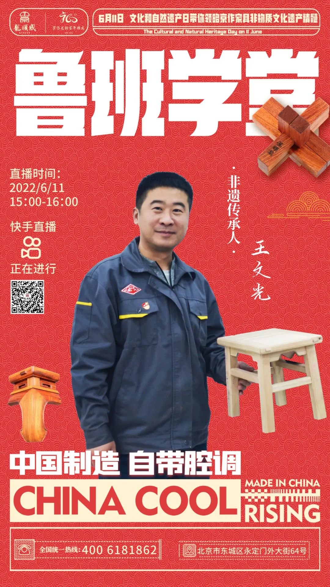 6月11日,京作技艺第六代传承人王文光全程进行视频直播,扫描下方二维码进入直播间“云体验”京作非遗技艺,不容错过~