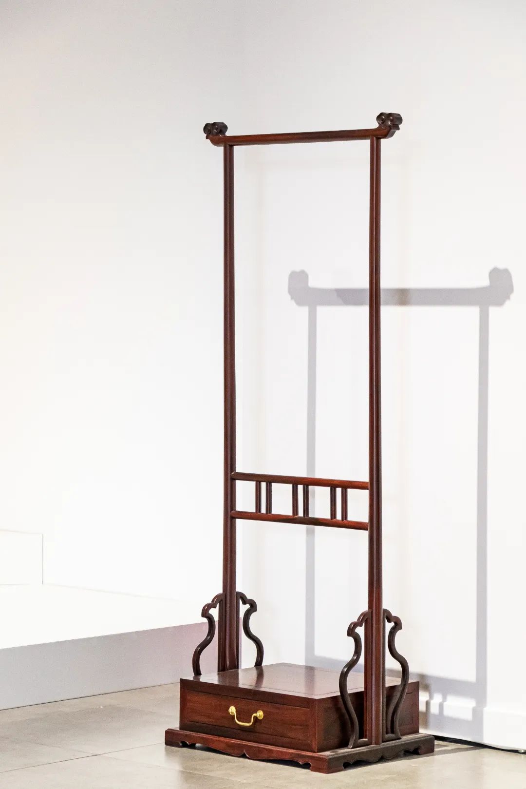 曲尺的通透空灵与床身对比鲜明,又和谐统一,正是明式家具的魅力所在。