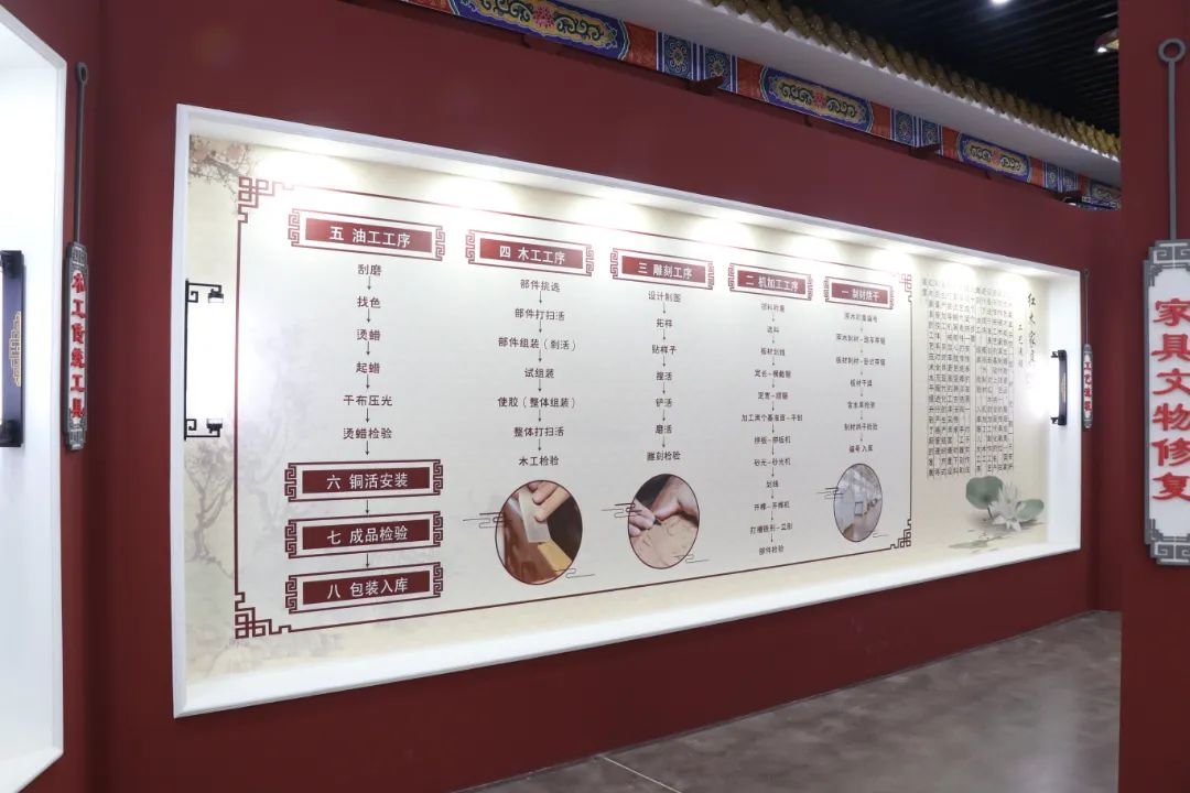 龙顺成国家级非遗传承基地位于北京市海淀区建材城中路27号,占地面积2万余平方米,技术工匠100余人,包括龍顺成非遗历史展厅,现代智造工区,传统制作工区,非遗大师工作室等特色板块,涵盖传统京作非遗技艺的全部工序。
