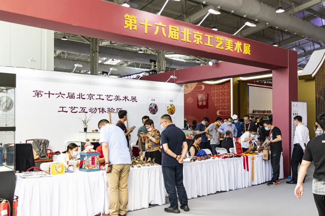 2号馆“北京工艺美术展 工艺美术体验区”部分重点展示金隅天坛龙顺成在深度挖掘京作文化的成效。现场京作技艺展示“金玉雕刻、浮雕线脚”的京雕工艺,参观者还可在展区内设的榫卯体验区,体验京作非遗工艺,感受红木文化。