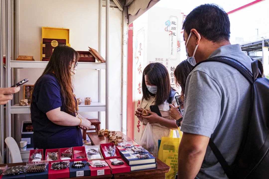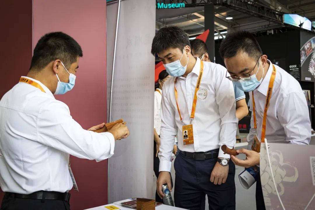 本届服贸会期间,龙顺成展示了“景泰蓝福寿纸巾盒”、“诸事如意茶盘”、多种类型鲁班锁等全新上市的京作文创产品,以非遗工艺融合中式茶、香、文房等元素,创新文化体验形式,打造国潮红木新风尚。
