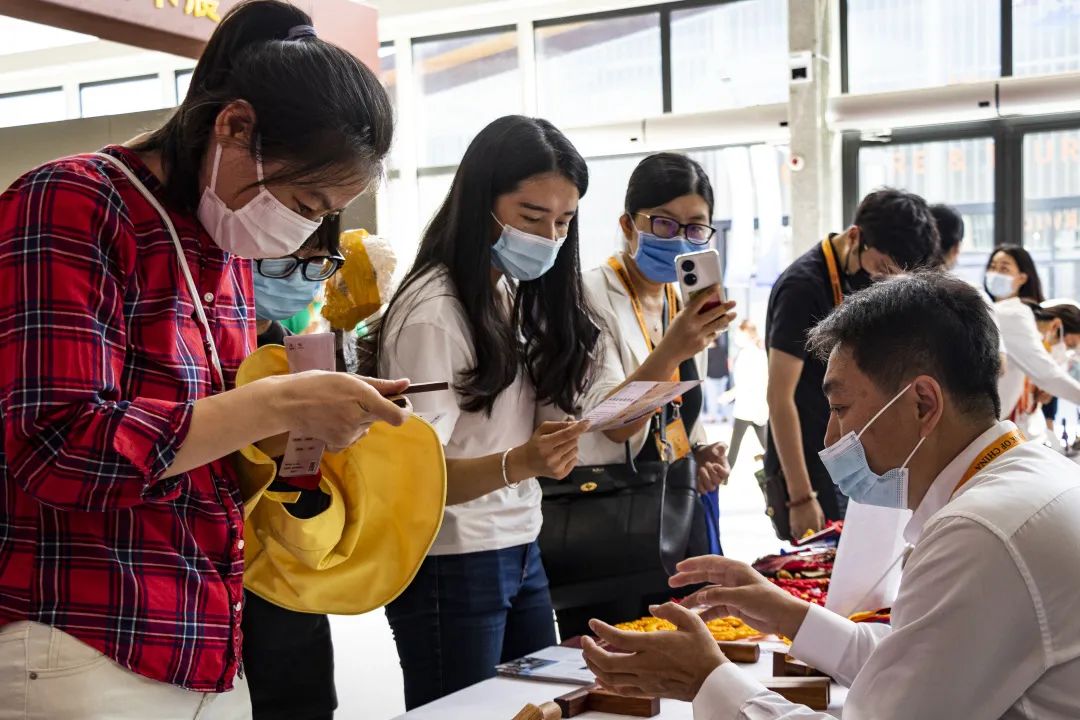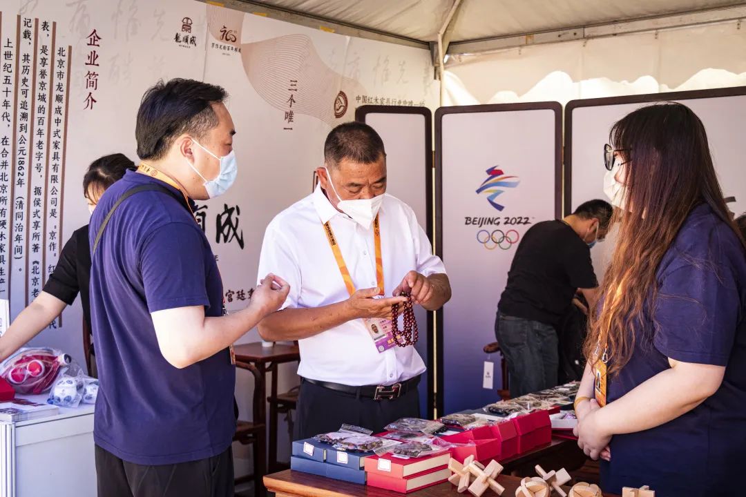 1号馆东城区文旅展区,现场观众络绎不绝,“龙顺成*雪莲”联名款文创受到追捧,两大中华老字号跨界联名的形式,展示老字号融合发展、破圈融合新形式,实现金隅天坛龙顺成文创产业发展和文化创意成果转化,开创老字号企业发展新局面,紧跟高品质文化旅游消费潮流,助力国际消费中心城市建设。