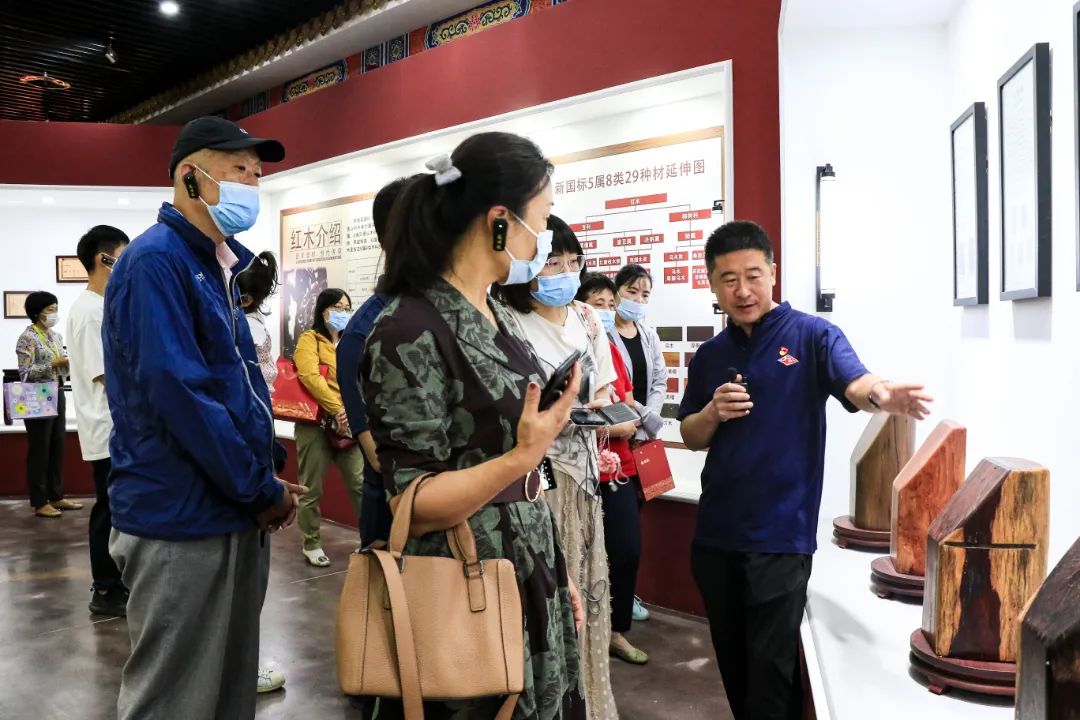 参观京作非遗博物馆,以“木韵华风、鲁班圣祠、百年一脉、礼制文化、极致精工、吉祥文化、薪火相传、国之重器、竭诚致远”等九大章节系统呈现京作文化的发展脉络。