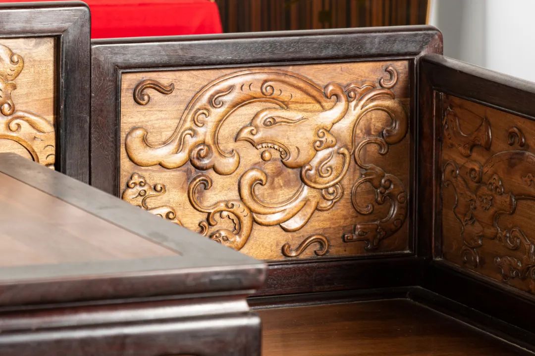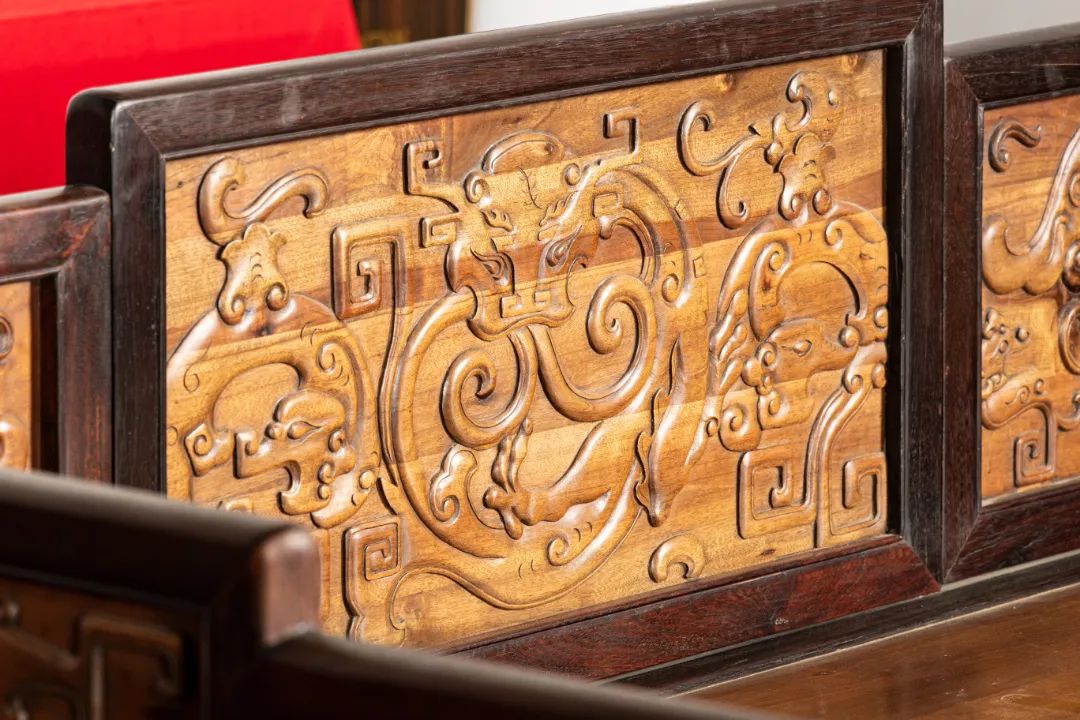 中国传统家具集材质与技艺于一身,每个细节,每个纹饰都体现着中华文明特有的气质与文化,为了让顾客更直观的感受中式家具文化的内涵,龙顺成160古旧家具展陈列了多件流传百年、雕刻精美的中式家具雕刻件,材质多以黄花梨、紫檀等贵重木材为主。悠悠百年,在抖落历史的尘封后,依然散发着当年匠人手工雕刻的灵动。